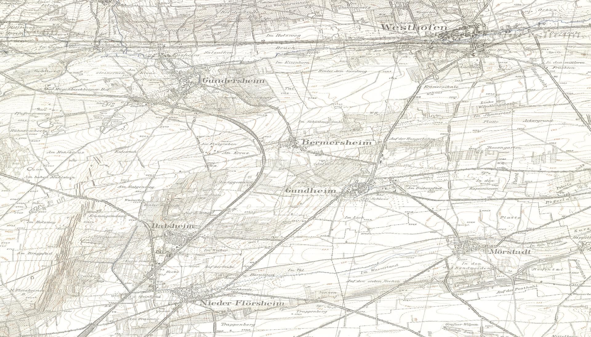 Der Gundersheimer Höllenbrand – erstmals urkundlich erwähnt 1437 unter dem Namen „in dem hilprant“ und 1710 dann unter dem Begriff „im Höllenbrand“. Seit 2016 bewirtschaften wir hier ca. 1 ha Spätburgunder-Reben in bester Lage. Die Basis des Höllenbrands, dieses reinen Südhangs, bildet ein monumentaler Kalksteinfels. Teile hiervon treten in unserem Weinberg mehrfach hervor. In diesen Bereichen leben die jungen Reben stellenweise gerade einmal in einer Bodenauflage von ca. 20 cm auf dem puren Fels. Mit den Jahren versuchen die Reben mit ihren Wurzeln den Fels zu durchdringen.